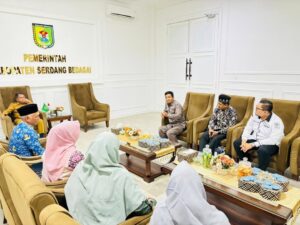 Rombongan FAI UMSU disambut langsung oleh Bupati Serdang Bedagai, Darma Wijaya, dalam suasana hangat dan penuh keakraban. Pertemuan ini menjadi momentum strategis dalam memperkuat hubungan antara dunia akademik dan pemerintah daerah, khususnya dalam mendukung peningkatan kualitas sumber daya manusia.